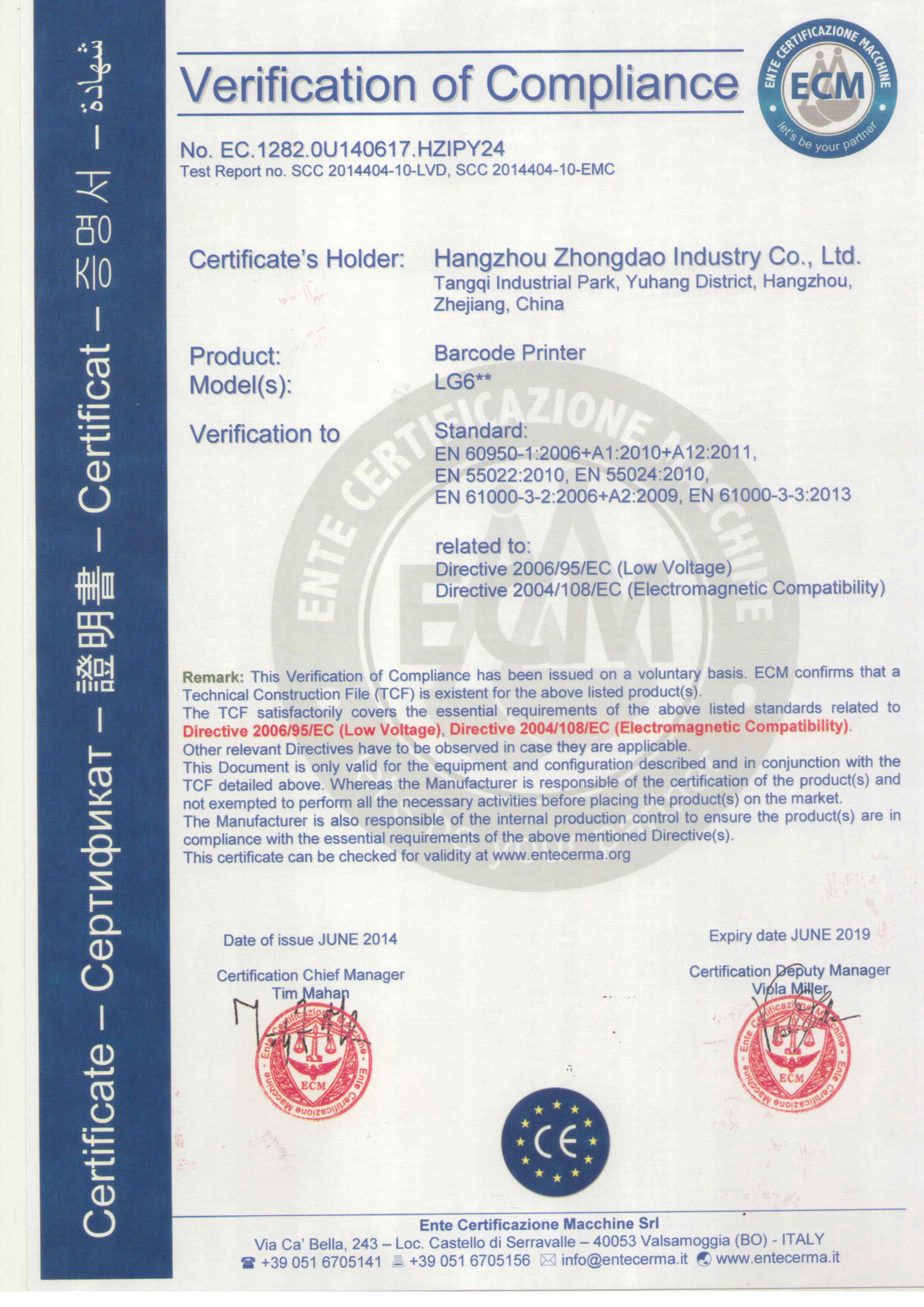 | Verification of Compliance | |
